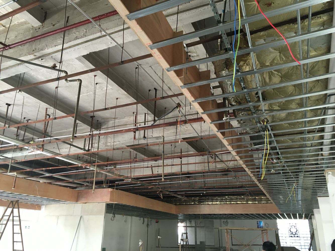 矿棉吸音板以及硅钙板都是在办公厂房装修中比较常用的材料,这些材料价格低廉,燃点较低,操作简单,通常被广大消费者认可,需要值得注意的是,不论使用那种材料做顶面材料都需要主要与消防设施的配合,通常都是先做吊顶龙骨,然后消防工程开始安装喷淋、烟感的管线设施,等吊顶材料全部封顶后,消防设施再进行最后的喷邻头及烟感器安装。