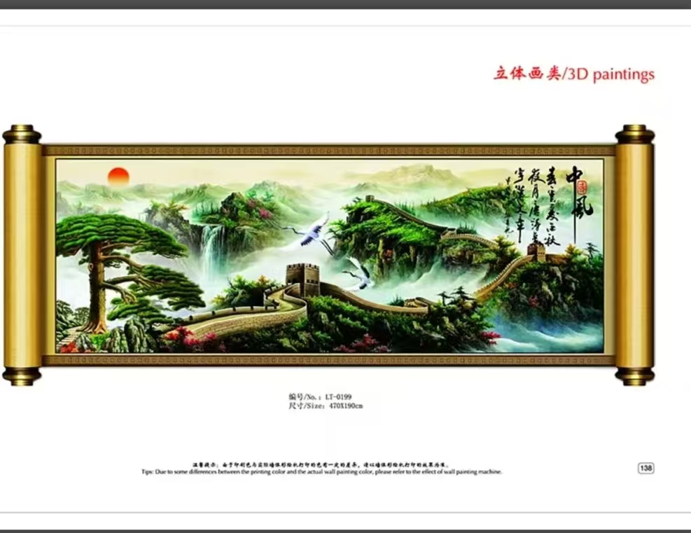 在 3D 墙体喷画领域,我们拥有一支专业的设计与施工团队。设计师们具备丰富的创意和艺术素养,能够根据客户的需求和场地特点,量身定制独特的 3D 墙体喷画方案。从奇幻的风景到生动的卡通形象,从企业文化展示到商业广告宣传,我们的作品总能以其逼真的效果和强烈的视觉冲击力,吸引人们的目光,为各类空间增添无限魅力。公司严格遵循高标准的工艺流程,确保每一幅喷画都能完美呈现设计效果,持久耐用。 我们以客户为中心,始终坚持品质至上、创新发展的经营理念。不断提升自身的技术水平和服务质量,为客户提供一站式的优质解决方案。未来,我们将继续努力,在 3D 墙体喷画领域不断开拓进取,为客户创造更多价值。