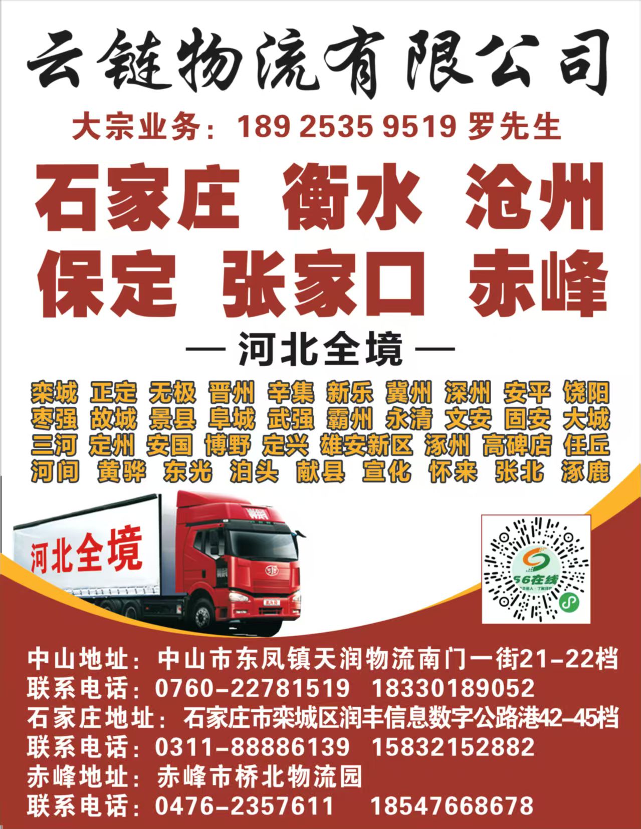 【中山到石家庄货物运输_中山到保定整车货运_中山到衡水零担运输】由闪推云会员自行提供,内容的真实性、准确性和合法性由发布会员负责,闪推云对此不承担任何责任。闪推云不涉及用户间因交易而产生的法律关系及法律纠纷,纠纷由您自行协商解决。联系:tousu@shantuiwang.com 是处理侵权投诉的专用邮箱,在您的合法权益受到侵害时,欢迎您向该邮箱发送邮件,我们会在2个工作日内给您答复,感谢您对我们的关注与支持!